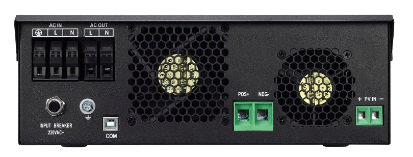 - Inteliģentais LCD displejs - daudzfunkcionāls LCD displejs reāllaika uzraudzībai un ērtai darbības režīmu, tostarp ieejas/izejas sprieguma, akumulatora stāvokļa un uzlādes parametru, konfigurēšanai.